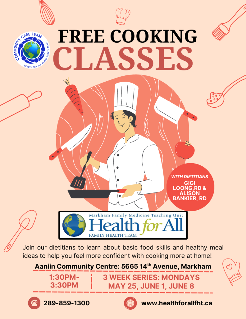 Join our dietitians at Aaniin Community Centre (located in the Teaching Kitchen) for a three week cooking series to learn about basic food skills and healthy meal ideas to help you feel more confident with cooking more at home!