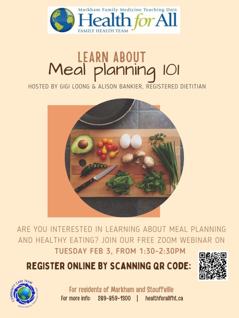 Join our free online meal planning workshop facilitated one of our Registered Dietitians. In his workshop, you will learn about the basics of meal planning to build healthier eating habits. You will also learn about healthy eating guidelines, and budget-friendly tips.