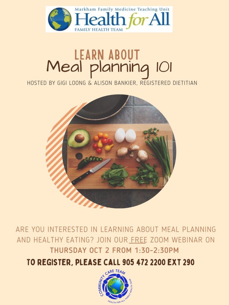 Are you interested in meal planning? Free virtual workshop facilitated by the Registered Dietitians at Health For All Family Health Team.