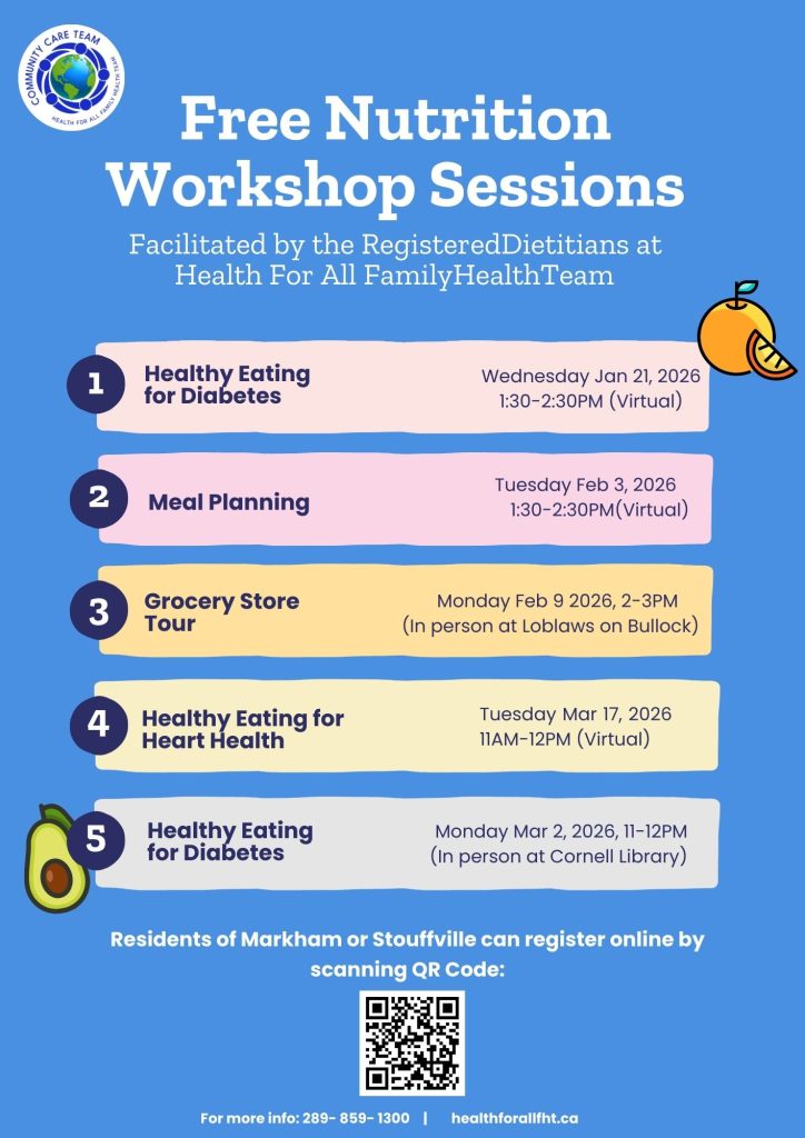 Free virtual workshop facilitated by the Registered Dietitians at Health For All Family Health Team.